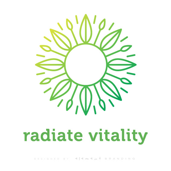 Radiate Vitality was a re-imagining of Vanessa King - Naturopath and Wellness Coach and wanted a bold logo that depicted both parts of the new name. Radiate is envisioned by the use of a sun design with the Vitality shown by the leaves that make up the sun-rays. The colours also reflect this idea with a sun yellow fading to a natural green.